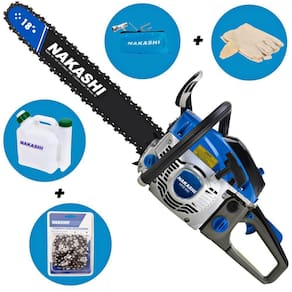 Motosserra Nakashi desenvolvida para o uso profissional, produzida com matérias primas e componentes de primeira linha que proporcionam excelente rendimento e grande resistência ao equipamento. São produzidas com materiais de altíssima resistência e grande parte do processo de montagem é executado por máquinas, o que confere amior precisão na montagem.