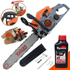 Motosserra Vulcan VS620 À Gasolina 2T 62cc 4HP 11.000rpm Com Sabre 20" Ponta Rolante + Óleo Toyama FG50 500ml 2T