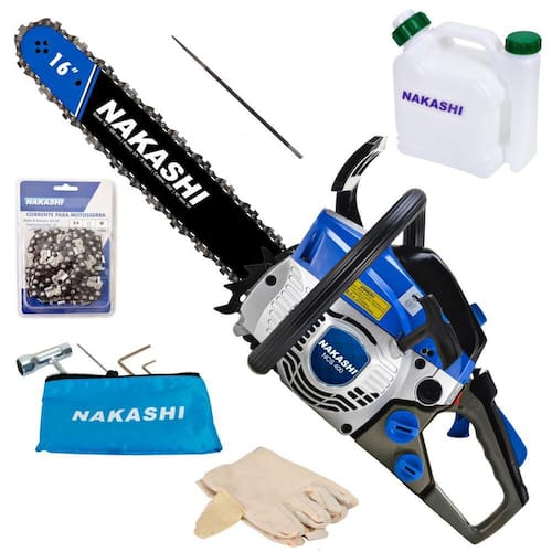Motosserra Nakashi desenvolvida para o uso profissional, produzida com matérias primas e componentes de primeira linha que proporcionam excelente rendimento e grande resistência ao equipamento. Grande parte do processo de montagem é executado por máquinas, o que confere a melhor precisão na montagem.
