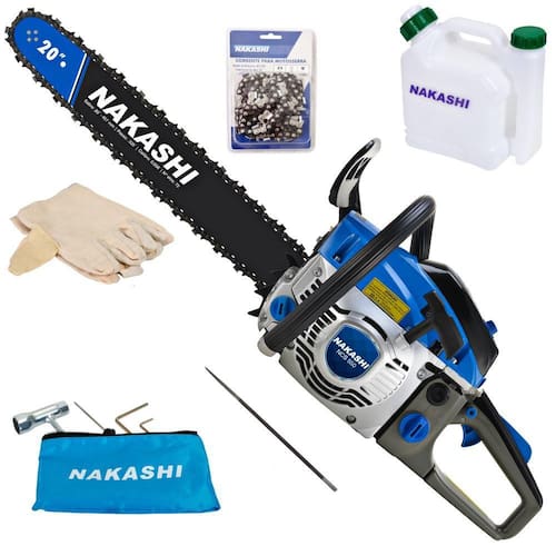 Motosserra Nakashi desenvolvida para o uso profissional, produzida com matérias primas e componentes de primeira linha que proporcionam excelente rendimento e grande resistência ao equipamento. São produzidas com materiais de altíssima resistência e grande parte do processo de montagem é executado por máquinas, o que confere amior precisão na montagem.