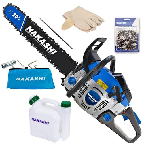 Motosserra Nakashi desenvolvida para o uso profissional, produzida com matérias primas e componentes de primeira linha que proporcionam excelente rendimento e grande resistência ao equipamento. São produzidas com materiais de altíssima resistência e grande parte do processo de montagem é executado por máquinas, o que confere amior precisão na montagem.