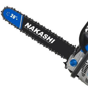 Motosserra Nakashi desenvolvida para o uso profissional, produzida com matérias primas e componentes de primeira linha que proporcionam excelente rendimento e grande resistência ao equipamento. São produzidas com materiais de altíssima resistência e grande parte do processo de montagem é executado por máquinas, o que confere amior precisão na montagem.