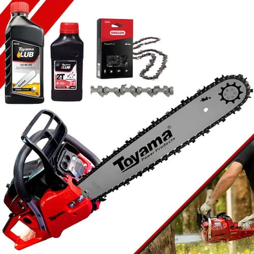 A Motosserra Toyama TCS58F GII 20SN foi desenvolvida para o uso frequente. É equipada com motor de 54,5 cc e 3,22 HP de potência, sabre de 20 polegadas de ponta dura e corrente Oregon. Ideal para atender proprietários de sítios e pequenas fazendas que buscam a qualidade de um equipamento, com baixo custo de aquisição. A máquina é leve e de fácil manuseio, seu excelente sistema antivibração, aprimora a qualidade e o rendimento de corte. Indicada para projetos agropecuários em podas e cortes de árvores de médios diâmetros.