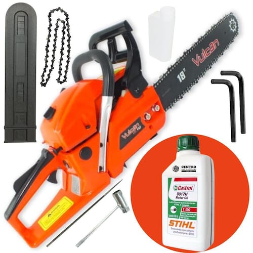 OMOTOSSERRA É DA MARCA VULCAN, E ACOMPANHA UM ÓLEO 2T DA MARCACASTROL STIHL.