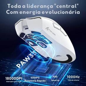 Sensor PixArt PAW3311 com até 18.000 DPI ajustáveis. 6 níveis de DPI para personalização de sensibilidade. Conexão sem fio Bluetooth, 2.4G e com fio. Design ergonômico e durável para uso prolongado. Modo opto-elétrico para máxima precisão de movimentos. Compatível com PC, notebooks e dispositivos Bluetooth.