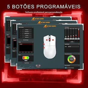 Conexão Tri-Mode: Utilize com fio, via Bluetooth ou 2.4ghz sem fio para máxima versatilidade Iluminação RGB Personalizável: Efeitos dinâmicos para complementar seu setup Sensor Avançado: PixArt PAW3311, com até 400 IPS e aceleração de 40G para rastreamento impecável Switches HUANO: Durabilidade de 20 milhões de cliques com respostas rápidas e precisas Autonomia Prolongada: Bateria de 300mAh com até 65 horas de uso contínuo
