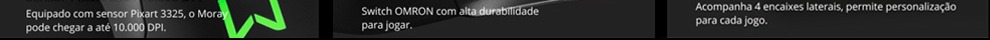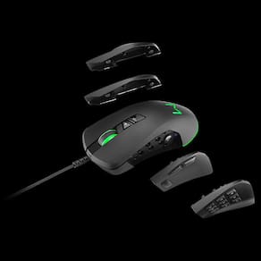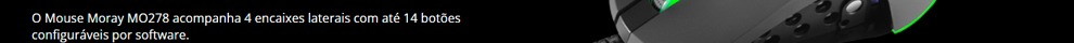 O Mouse Gamer Warrior Moray é para os aficionados pelo máximo desempenho. Ele acompanha 4 encaixes laterais que te permitem personalizá-lo em até 4 combinações diferentes. São botões Switch Omron com até 20 milhões de cliques, desenvolvidos com duas opções de encaixes e apoio ergonômico, além de 3 teclas multimídia com atalho para disparo, avançar e voltar a página em que estiver. Além disso, você pode personalizar mais 9 teclas multimídia, que são programáveis através de software.