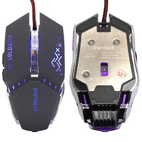O Mouse Gamer X Soldado é um mouse moderno e projetado para oferecer a melhor experiência em qualquer tipo de jogo. O nível de DPI pode ser alternado rapidamente durante os jogos por meio do botão localizado na parte superior do mouse, o x Soldado possui um peso de metal em seu interior que estabiliza seu uso e textura fosca, para que ele tenha a ''pegada'' ideal para jogos on-line.O mouse vem com um cabo reforçado trançado em nylon e filtro contra interferências, o que garante maior vida útil ao produto e uma maior mobilidade.São até 2.400 DPI para que você seja o mais ágil em qualquer situação, seja em jogos ou até mesmo navegando.O mouse conta com uma incrível iluminação de LED, que além de proporcionar mais diversão ao jogo, dá maior visibilidade ao equipamento em ambientes escuros com 7 cores de iluminação. Com dois botões laterais e design moderno, o Mouse une estilo e funcionalidade.ESPECIFICAÇÕES:- Conexão USB- Iluminação LED em 7 cores- DPI Ajustável 800 / 1.200 / 1.600 / 2.400- Botões: direito, esquerdo, ajuste de DPI, scroll e dois botões laterais- Sensor óptico- Plug & Play sem software de instalação- Compatível com computadores e notebooks Windows e Linux- Peso interno para melhor desempenho e estabilidade no uso- Cabo revestido em nylon para maior resistência e liberdade durante os jogos- Comprimento aproximado do cabo: 1,5 metros- Dimensões aproximada do produto: ( A x L x P)4,4 x 5,8 x 12,4Conteúdo da embalagem:-1x Mouse gamer Com Fio