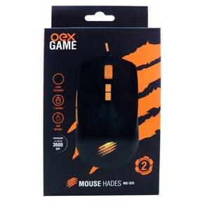 Mouse Gamer Hades 7 Botões Gamer 3.600 Dpi Oex O mouse gamer Oex Hades Ms-325 combina um design ergonômico, cabo trançado e led na cor laranja. Velocidade, exatidão e precisão vêm juntas neste mouse para jogos. Possui sensor óptico de3.600 DPI que oferece grande precisão. Qualquer jogo que você está jogando ou inimigo que está enfrentando; com o mouse Hades, você estará pronto para o que está por vir.