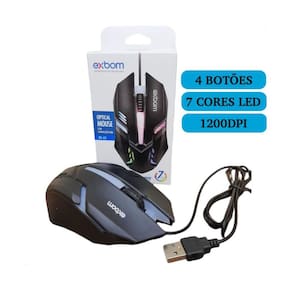 O mouse gamer Exbom MS-62 é um mouse moderno e projetado para oferecer a melhor experiência em qualquer tipo de jogo. Conta com uma incrível iluminação de LED RGB, que além de proporcionar mais diversão ao jogo, dá maior visibilidade ao equipamento em ambientes escuros. São 7 cores de iluminação aleatória. O mouse vem com um cabo de 1,50 metros com conexão USB. Outro destaque fica para o desenho moderno e luzes que enfeitam e iluminam o mouse. Especificações Técnicas: 7 cores de luzes de LED, que acendem aleatoriamente 3 botões Resolução máxima de 1200 DPI Conexão: USB Comprimento do cabo: 1,5m Tecnologia óptica de alta definição Plug and play sem software de instalação Equipamento compatível para computadores, PC ou notebook
