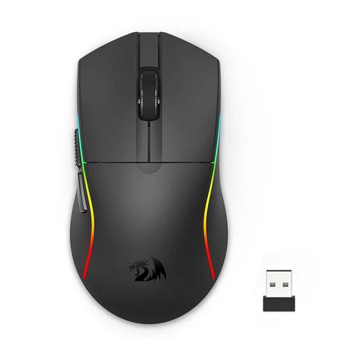 Características: - mouse gamer redragon deicide pesando apenas 62g para não causar incômodos durante o uso - sensor paw3395 de alta precisão com até 26000 dpi - iluminação rgb trazendo mais brilho para seu setup - botão lateral frontal texturizado para melhor aderência e se diferenciar do botão traseiro