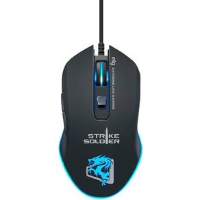 Um verdadeiro Soldado derrota seus adversários com apenas um golpe. Ações muito mais precisas! Alta sensibilidade e precisão com tempo de resposta de 250Hz/4 ms. Possui botão exclusivo para escolha de resolução variável (1200/1600/3200/4800 DPI), permitindo maior jogabilidade em jogos FPS, MOBA e MMO. Possui 06 botões, sendo 02 de ação configuráveis com durabilidade de 30 milhões de cliques. Design otimizado para estilos Palm e Grip. Ergonômico tanto para destros quanto para canhotos. Sistema de acústica zero e grips de teflon para máxima durabilidade. Possui iluminação LED RGB em padrão breathing de 7 cores. Cabo com extensão de 1.5 m, revestido por malha de nylon que impede interferências e garante máxima durabilidade. - Marca: ELG - Modelo: Strike Soldier MGSS - Cor: Preto - DPI variável: 1200/1600/3200/4800dpi - Botão para DPI selecionável: Sim - Quantidade de botões: 6 - Quantidade de botões configuráveis: Sim - Iluminação LED: Estilo Breathing em 7 cores - Sensor: Óptico 5.0G - Comprimento do cabo: 1,5m - Estilo ergonômico para destros e canhotos: Sim - Design otimizado para estilos: Palm e Grip - Cabo revestido: Sim, malha de nylon