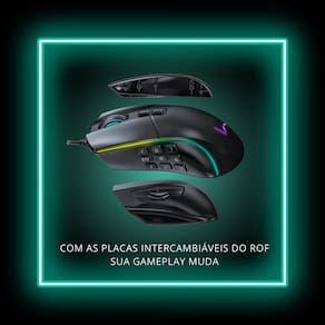 Destaque para suas placas intercambiáveis, que permitem customizar o mouse conforme a necessidade, transformando sua jogabilidade e aumentando a versatilidade. O design ergonômico proporciona conforto prolongado, prevenindo fadiga durante longas sessões.