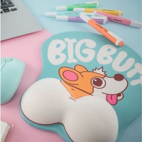 Mouse pad confortável com design Corgi Dog, rosa e azul claro, com design divertido e suporte de pulso. Tapete de mouse extra macio, design ergonômico para apoio de braços e mãos.\ n\ nMedidas: comprimento 24 cm x altura 30 cm x largura 4 cm\ n\ nAcessórios de computador