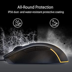 sensor óptico de 8000 dpi: oferece rastreamento com precisão de pixels, com um botão DPI para alterne entre quatro níveis de sensibilidade em tempo real - Resistência IP56 à poeira e à água: o revestimento protetor garante durabilidade de longa duração - ASUS Antibacterial Guard: Inibe crescimento bacteriano para manter a superfície e os botões do mouse higiênicos