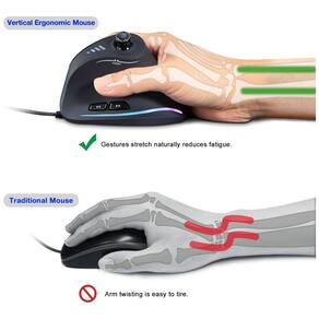 Mouse Vertical Ergonômico Este mouse vertical baseia se na ergonomia, reduzindo efetivamente a tensão do pulso do usuário e a dor muscular por uma maneira natural de aperto de mão. Um curador ideal para dor no pulso, fadiga no ombro, síndrome do túnel do carpo e tendinite. 5 Direction Rocker Um rocker integrado de 5 orientações ajuda o jogador a alcançar seu melhor desempenho em cada campanha. Neste mouse para jogos, 1 balancim equivale a 5 teclas. Controle de polegar, a realização da operação frente, traseira, esquerda, direita, pressão para baixo. Adaptado para FPS, MOBA, MMO e outros diferentes tipos de jogos. Botões programáveis A função de definição de macro inteligente permite que os usuários personalizem todos os 11 botões de acordo com diferentes individualidades. Através do software anexado consulte o manual, construa um mouse de jogo profissional para você. Os dados programáveis serão salvos no mouse, se conectá lo a um computador, não haverá problemas de reinicialização. Configuração alta 5 níveis de DPI variando a velocidade de 1500 a 10000 sensor. Este mouse para jogos também adaptou o chip fotoelétrico PMW3325, com velocidade de movimento de 100IPS, aceleração de 20G, frequência de varredura de 5000FPS para alcançar sua jogabilidade superior. Luz LED RGB predefinida O cinto de lâmpada de mudança de cor RGB é definido em ambos os lados. Personalize a luz RGB por efeitos neon, Marquee ou Streamer total de 5 efeitos de iluminação para aumentar a atmosfera do jogo Marca: Não Informado