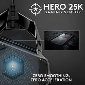 Logitech G Mouse para jogos 502 SE Hero RGB de alto desempenho com 11 botões programáveis - Sensor hero 16k de alto desempenho: sensor Logitech mais preciso com até 16.000 dpi para o máximo em velocidade, precisão e capacidade de resposta em toda a faixa de dpi - 11 botões personalizáveis e memória integrada: atribua comandos personalizados aos botões e salve até cinco perfis prontos para reproduzir diretamente no mouse - Sistema de peso ajustável: organize até cinco pesos removíveis de 3,6 gramas dentro do mouse para ajuste personalizado de peso e equilíbrio. Requisitos - Windows 7 ou posterior. macOS 10.11 ou posterior. Chrome OS. Porta USB - Iluminação RGB programável e tecnologia de sincronização de luz: personalize a iluminação de quase 16,8 milhões de cores para combinar com as cores do seu time, ostente suas próprias ou sincronize cores com outros Logitech G Gear - Tensionamento do botão do interruptor mecânico: o sistema de tensionamento de mola de metal e as dobradiças articuladas são embutidos nos botões esquerdo e direito do mouse para jogos para uma sensação de clique nítida e limpa com feedback de clique rápido