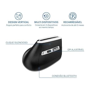 - Modelo: Mouse vertial sem fio recarregável
