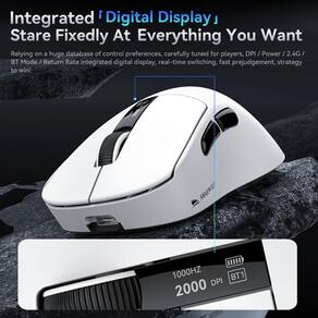 Controle de dpi, modo de conexão e taxa de atualização com display digital integrado.