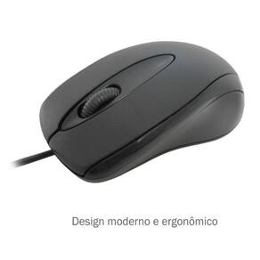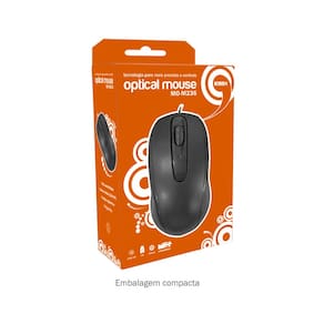 Mouse Óptico MO-M236 com design ergonômico, tecnologia óptica de alta sensibilidade, scroll texturizado (barra de rolagem), linhas modernas e excelente acabamento.