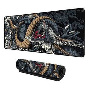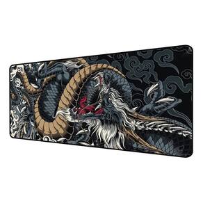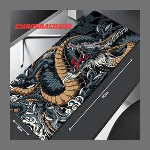 Dimensões: 90cm largura x 40cm profundidade Espessura: 3mm Material da Superfície: Têxtil de alta densidade para deslizamento otimizado Material da Base: Borracha natural antiderrapante Acabamento das Bordas: Costura reforçada para máxima durabilidade Cor/estampa: Dragão Preto