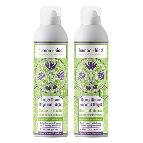 Sabonete líquido Human+Kind Shower Mousse — Grapefruit Delight unissex de 6,76 onças — pacote com 2