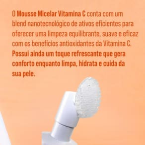 Além disso, a textura leve e refrescante do Mousse Micelar torna a aplicação uma experiência agradável e relaxante. A vitamina C presente na fórmula ajuda a combater os efeitos nocivos dos radicais livres, prevenindo o envelhecimento precoce e promovendo uma aparência mais jovem e radiante.