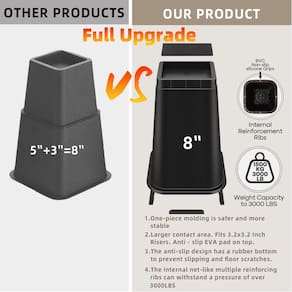 - ?Resistência industrial e ultradurável? "elevadores de cama com capacidade de 1,360.8 kg" – Feito de elevação PP de alta densidade (certificado SGS), resistente a esmagamento e sem ruído vs. suportes frágeis de plástico/metal. Ideal para molduras de cama pesadas, móveis antigos ou áreas propensas a terremotos. Supera os "elevadores de cama de plástico baratos"!