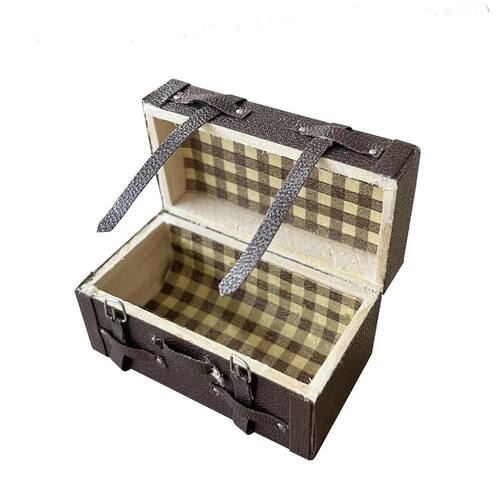 Material: couro sintético de madeira Tamanho: 3x3x5,8 cm Peso: cerca de 18g Design retrô requintado com textura semelhante a couro e forro xadrez, perfeito para criar cenas de casas de bonecas em estilo vintage. Feito de madeira durável com detalhes finos, realçando o realismo e o charme decorativo em telas em miniatura. Ideal para arranjos de casas de bonecas em escala 1/12, adicionando autenticidade a quartos, salas de estar ou teatros com temas de viagens. Este é apenas um acessório modelo, não para uso real. Não é um brinquedo para crianças pequenas — evite ingestão ou ferimentos acidentais. Adequado para colecionadores, amadores e amantes de cenas em miniatura; aprimora conjuntos de brinquedos fingidos com um estilo de bagagem realista.