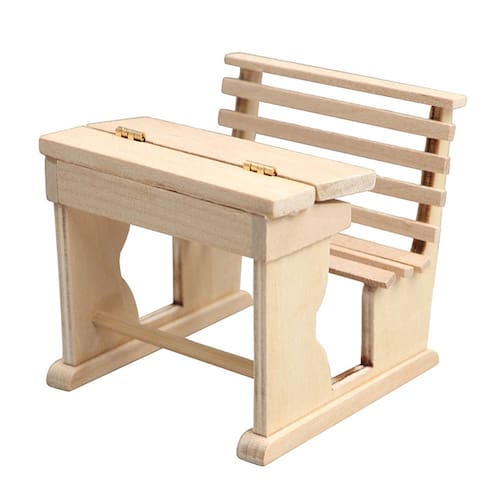 Tamanho (L/W/H): 7,1x7,2x6,8 cm Material: madeira Peso: 60 g Mesa escolar em miniatura Mesa de madeira em escala 1:12 com banco embutido e tampa articulada, perfeita para salas de aula de bonecas, salas de estudo ou configurações criativas de brinquedos de teatro. Design DIY sem pintura A superfície de madeira inacabada permite que colecionadores e amadores pintem, manchem ou decorem a mesa, adicionando estilo personalizado às cenas de minicasas. Artesanato realista Detalhada com encosto de ripas e armazenamento elevatório, esta peça de mobiliário de casa de bonecas imita mesas de sala de aula reais, enriquecendo ambientes de estudo em miniatura. Uso seguro e ajuste em escala Este produto é um modelo de brinquedo, não destinado ao uso real. Adequado para casas de bonecas e bonecas em escala 1/12; brinquedo não infantil, evite engolir ou ferir acidentalmente. Acessório versátil para minicasas. Ideal para casas de bonecas, salas de estudo, salas de aula ou expositores vintage, este acessório aprimora as coleções de móveis de casas de bonecas e conta histórias de brinquedos fingidos.