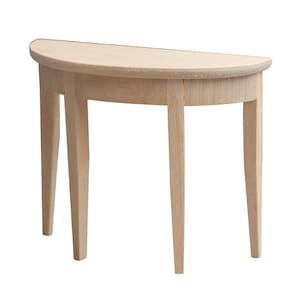 Dimensões: Comprimento 8,8 cm x largura 3,1 cm x altura 6,5 cm Material: madeira Peso: 33 g Mesa semi-redonda em miniatura Mesa de console semicircular de madeira em escala 1:12 com quatro pernas robustas, perfeita para entradas de casas de bonecas, corredores ou salas de estar. Design de madeira inacabado Feita de madeira natural com acabamento bruto, esta mini mesa pode ser pintada, manchada ou personalizada, ideal para projetos de bricolage e decoração criativa. Durável e leve. Bem feito com bordas lisas e suporte estável, adicionando detalhes realistas aos conjuntos de móveis de casas de bonecas e aprimorando as exibições de colecionadores. Uso seguro e ajuste em escala Este produto é um modelo de brinquedo, não destinado ao uso real. Adequado para casas de bonecas e bonecas em escala 1/12; brinquedo não infantil, evite que crianças engulam ou se machuquem acidentalmente. O acessório versátil de minihouse complementa salas de estar, entradas ou cantos decorativos, enriquecendo as configurações de brinquedos de fingir e aprimorando a decoração de interiores em miniatura.