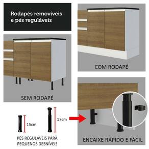 O acabamento é em Pintura Poliéster de alta resistência, que confere maior durabilidade e mantém a cor por muito mais tempo. A estrutura é em branco fosco e as portas e frentes são em amadeirado Rustic.