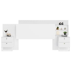 Destaque para a tomada embutida na cabeceira, detalhe que traz modernidade e praticidade para você. O acabamento é Pintura UV de alta resistência que garante durabilidade e qualidade ao móvel. Cada uma das mesas de cabeceira tem 57 cm de altura, 40,5 cm de largura e 35 cm de profundidade.