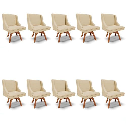 Se você não abre mão de beleza e qualidade, nós temos exatamente o que você precisa, confira o Kit 10 Cadeiras Estofadas Base Giratória de Madeira Lia Veludo Off White Luxo da Ibiza e transforme a decoração da sua Sala de Jantar!