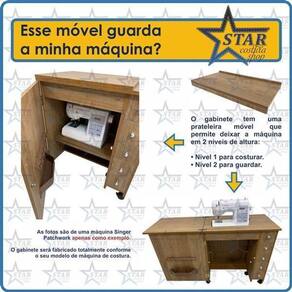Móvel Gabinete Mesa Luxo Para Maquina Costura Brother Cs6000I Produto direto da fábrica Gabinete luxo com gaveteiro para máquina de costura doméstica O gaveteiro é o nosso modelo mais completo, com 5 gavetas, é um móvel muito bonito e espaçoso. Para quem quer deixar todas suas ferramentas, linhas, agulhas, tesouras, fita métrica, enfim, tudo bem organizado em um único local, o gaveteiro seria o móvel mais indicado. Esse móvel serve para máquinas de costura singer, elgin, vigorelli pretinha, verdinha, vermelha e muitas outras marcas. Todas as máquinas antigas com medidas de 37x18cm que tenham os dois furos na parte de trás para encaixe das dobradiças vão servir nesse móvel. Material: 100% mdf de 15mm de espessura. Mesmo material de móveis planejados de alto padrão. Cor: exatamente igual das fotos deste anúncio. Medidas: Largura: 45cm Altura: 76cm Comprimento móvel fechado: 69cm / comprimento móvel aberto: 123cm Abertura da máquina: 42,5x18cm Largura interna espaço para as pernas : 49,5cm Itens inclusos: - gaveteiro luxo completo o produto vai desmontado ; - manual de montagem passo a passo detalhado; - kit de rodinhas com trava; - porta cone de linha exclusivo ; - mini catálogo com cupom de desconto para próxima compra. Marca: Star Costura Ean: 7808887622451
