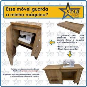 Móvel Gabinete Mesa Luxo Para Maquina De Costura Singer M1605 Produto direto da fábrica Gabinete luxo com gaveteiro para máquina de costura doméstica O gaveteiro é o nosso modelo mais completo, com 5 gavetas, é um móvel muito bonito e espaçoso. Para quem quer deixar todas suas ferramentas, linhas, agulhas, tesouras, fita métrica, enfim, tudo bem organizado em um único local, o gaveteiro seria o móvel mais indicado. Esse móvel serve para máquinas de costura singer, elgin, vigorelli pretinha, verdinha, vermelha e muitas outras marcas. Todas as máquinas antigas com medidas de 37x18cm que tenham os dois furos na parte de trás para encaixe das dobradiças vão servir nesse móvel. Material: 100% mdf de 15mm de espessura. Mesmo material de móveis planejados de alto padrão. Cor: exatamente igual das fotos deste anúncio. Medidas: Largura: 45cm Altura: 76cm Comprimento móvel fechado: 69cm / comprimento móvel aberto: 123cm Abertura da máquina: 42,5x18cm Largura interna espaço para as pernas : 49,5cm Itens inclusos: - gaveteiro luxo completo o produto vai desmontado ; - manual de montagem passo a passo detalhado; - kit de rodinhas com trava; - porta cone de linha exclusivo ; - mini catálogo com cupom de desconto para próxima compra. Marca: Star Costura