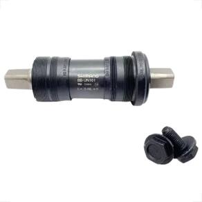 O modelo BB-UN101 é a linha econômica de movimento central da Shimano. Esse item segue com as 02 roscas em plástico, é compatível com todos os quadros de rosca com comprimento do tubo do movimento central de 68mm. Possui rolamentos selados e comprimento de eixo de 122,5mm. Acompanha parafusos sextavados.