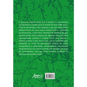 O principal objetivo deste livro é analisar os movimentos sociopolíticos e ambientais no estado do Acre (1988-2002). Trata-se de estudar como surgiram e por que esses atores influenciaram um novo marco institucional e a trajetória da democracia a nível local. Partimos da hipótese de que, quando existe uma mudança em algumas variáveis como oportunidades políticas e capital social, elas afetam o sistema político e isso, por sua vez, cria as condições para aumentar os níveis de participação política de atores sociopolíticos e ambientais, incrementando mecanismos de governança e um maior controle dos cidadãos por meio da accountability, visto que essas variáveis incidiram no processo democrático local.