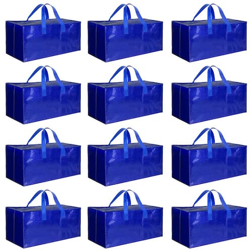Simple Deluxe Pacote com 12 bolsas de transporte extra grandes com alças de mochila, alças fortes/zíperes, bolsa de armazenamento resistente para transporte, viagem, acampamento, economia de espaço,