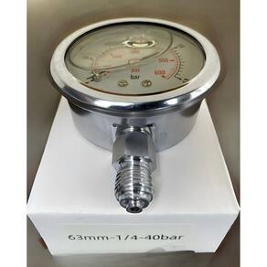 Mr 063 imp. Inox manômetro reto 63mm inox 1/4'' 0 a 40bar 600psi glicerina Diâmetro 63 mm 2.1/2 . Temperatura de trabalho de -15ºc a 55ºc. Rosca 1/4 macho bsp. Saída inferior vertical . Caixa em aço inoxidável aisi 304. Com glicerina. Internos e conexão em latão une-en 12165. Visor em policarbonato. Dupla escala bar e psi. Conforme en 837 - 1. Asme b40.1-1991 b grade. Classe de precisão: cl.2,5 Marca: Não Informado Ean: 7908633118105