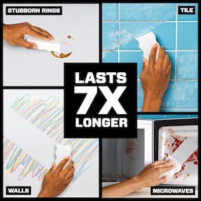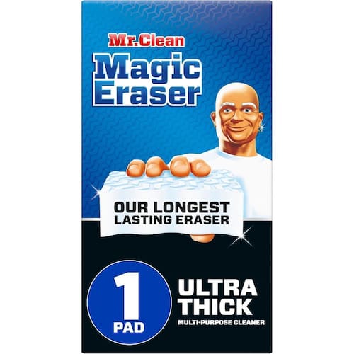 Clean Magic Eraser Limpador multiuso ultra grosso para múltiplas superfícies Basta molhar, apertar e apagar mais de 150 sujeiras com facilidade. Os micro-lavadores de limpeza pesada alcançam profundamente as ranhuras da superfície, removendo a sujeira e a fuligem acumuladas. É um limpador multiuso que resolve sujeiras difíceis em toda a sua casa, por dentro e por fora. Use como limpador de banheiro em espuma de sabão, anéis de banheira e manchas de água. Use-o em sua cozinha em manchas de marcadores permanentes, balcões gordurosos e fogões sujos. Use-o ao ar livre em grelhas e móveis de jardim. Clean Magic Eraser Ultra Thick também é um ótimo limpador de sapatos e de parede. Contém 1 unidade 11.7 x 9 x 3.1 cm do EUA Marca: Não Informado Ean: 030772124154