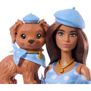 Muñeca Barbie con Looks a Juego y su perro mascota, ambos vestidos con ropa azul de lunares y accesorios a juego como boinas y bolsos, cabello castaño. - ¡Habla de mejores amigos por siempre! Con los sets Barbie Looks a Juego, las muñecas Barbie y sus adorables perros coordinados se visten con conjuntos a juego. - La muñeca Barbie y su cachorro combinan con lindos lunares azules. Los detalles de moño en las mangas de su vestido complementan perfectamente el moño en la bandana de su cachorro. - Afortunadamente, sus accesorios también vienen en pares. ¡Viste al dúo con boinas azules a juego, collares dorados y bolsos rosados! - Las botitas azul pastel de Barbie agregan otro nivel de detalle coordinado. Además, complementa a su cachorro con un collar y una correa rosada para más diversión a juego. - Después de vestir a Barbie y su mascota con looks a juego, ponlos juntos en poses divertidas: Barbie tiene articulaciones flexibles para un juego más realista. - Las muñecas Barbie Looks a Juego son un gran regalo para niños desde 3 años, especialmente para quienes disfrutan imaginar historias con mascotas y ser creativos con la moda. [PRODUTO INTERNACIONAL / COMPRA INTERNACIONAL] Atenção! Este produto é de origem internacional e está sujeito aos procedimentos e regulamentações aplicáveis à importação de bens para uso pessoal no país de destino. O consumidor é responsável por garantir que o produto esteja em conformidade com quaisquer exigências locais, certificações ou autorizações necessárias para seu uso. Por favor, verifique as leis e diretrizes aplicáveis das autoridades reguladoras do seu país antes de concluir a compra.