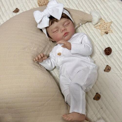 Tamaño: Aproximadamente 48 cm (19 pulgadas). Estructura: Cabeza y extremidades de vinilo suave, cuerpo de tela. Nota: La muñeca con cuerpo de tela no puede bañarse en agua. Ojos: Ojos cerrados, no se abren. Pestañas implantadas. Cabello: Cabello enraizado. Incluye: 1 muñeca terminada, 1 conjunto de ropa, 1 chupete, 1 biberón, 1 certificado de nacimiento. Uso recomendado: Regalo de cumpleaños, regalo navideño, compañía para niños, acompañante para abuelos y colección de muñecas. Edad recomendada: A partir de 3 años. Características: Para lograr una apariencia más realista, se utilizan materiales de pintura avanzados importados, con pintura en 3D para un acabado delicado. - Diseño ultra realista de recién nacido: Con 48 cm de largo, esta muñeca reborn refleja el tamaño y proporciones delicadas de un bebé real. Extremidades de vinilo suave y cuerpo articulado permiten posiciones naturales, mientras que venas pintadas a mano, uñas con media luna y expresión somnolienta rosada brindan un realismo sorprendente. - Experiencia inmersiva de bebé real: Cuerpo ponderado listo para abrazar y la capacidad de usar ropa real de bebé fomentan la autenticidad. Los niños disfrutan llevarla a todas partes, los coleccionistas la valoran como una obra de arte para exhibir. Incluye certificado de nacimiento para personalización. - Detalles realistas: Cabello pintado a mano, pestañas implantadas y expresión realista cautivan. Manos y pies flexibles aumentan la autenticidad. Eleva tu colección con esta muñeca bebé exquisitamente diseñada. - Detalles fieles a la vida: Esta muñeca bebé realista está diseñada con gran precisión para capturar la calidez e inocencia de un recién nacido. Venas delicadas, pliegues suaves y arrugas finas pintadas a mano crean texturas de piel naturales. - Las muñecas realistas pueden acompañar a los niños, enseñándoles cuidados a través del juego. Son excelentes para cumpleaños, regalos navideños, actividades preescolares, juegos de rol y práctica de cuidado parental. También ideales para reducir la soledad en personas mayores, brindar consuelo a padres que han perdido un hijo y aliviar traumas.