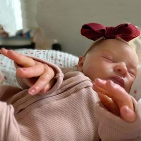 Tamaño: Aproximadamente 50 cm / 20 pulgadas Peso de la muñeca con ropa: Aproximadamente 1.2 kg Estructura: La cabeza y las extremidades están hechas de material de vinilo suave, el cuerpo de tela es muy suave y con tacto real. Las extremidades de la muñeca son móviles. La muñeca puede sentarse, pero no puede pararse ni hablar. Aviso: La muñeca con cuerpo de tela no puede bañarse en agua. Ojos: Ojos cerrados, no se pueden abrir, bebé dormido. Cabello: Pintado a mano. Incluye: - La muñeca terminada * 1 - Juego de ropa * 1 - Chupete * 1 - Biberón * 1 - Certificado de nacimiento * 1 Características: Para lograr un efecto más parecido a un bebé real, se usan materiales de pintura avanzados importados para fabricar la muñeca, y el color de piel está pintado en 3D para hacerla más delicada, con veteado en la piel y venas visibles. - Compañera Emocional: Más que una muñeca, es una fuente de consuelo y alegría. Sus rasgos realistas y expresión serena inspiran instintos de cuidado, ofreciendo apoyo emocional para niños, personas mayores o quienes buscan alivio del estrés mediante el juego cariñoso. - Regalo Perfecto para Múltiples Escenarios: Un regalo inolvidable para cumpleaños, Navidad o juegos de roles. Ideal para niñas, coleccionistas de muñecas, fotógrafos o abuelos. Incluso puede usar ropa y accesorios de tamaño recién nacido: pañales, cochecitos y más, para un juego imaginativo inmersivo. - Experiencia Realista de Bebé: Desde su cuerpo ponderado y listo para abrazar, hasta la capacidad de "vestir" ropa real de bebé; cada detalle fomenta la autenticidad. Los niños adoran llevarla a todas partes, mientras los coleccionistas la valoran como una obra maestra para exhibir. Incluye un certificado de nacimiento en blanco para personalización. - Detalles Realistas: Disfruta de la perfección realista con nuestra muñeca reborn. Pelo pintado a mano, pestañas incrustadas y expresión realista captan la atención. Manos y pies flexibles aumentan la autenticidad. Eleva tu colección con esta muñeca bebé de diseño exquisito. - Versátil y reconfortante: Ideal para cumpleaños, Navidad y actividades preescolares, nuestras muñecas reborn también brindan compañía de calidad para personas mayores solitarias y pacientes con Alzheimer.