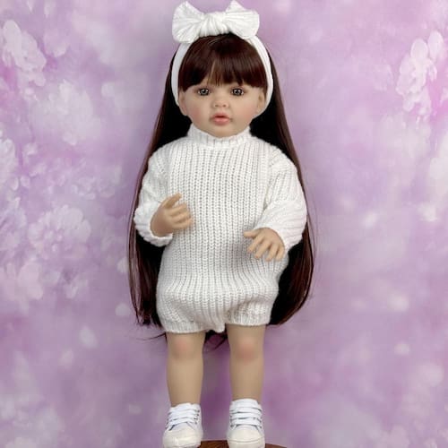 Descripción del producto: Tamaño: Aproximadamente 55 cm (22 pulgadas) Material: Cuerpo completo de vinilo, las extremidades de la muñeca son articuladas, puede sentarse, acostarse y pararse (requiere soporte); puede sumergirse en el agua. Cabello: Peluca adherida. Incluye: - Una muñeca con ropa - Un chupete - Un biberón - Una tarjeta de nacimiento Características destacadas: - Diseño ultra realista de recién nacido: Con 22 pulgadas de largo, esta muñeca reborn imita el tamaño y las proporciones delicadas de un bebé real. Extremidades de vinilo suave y cuerpo articulado permiten posiciones naturales. Detalles pintados a mano como venas, uñas con media luna y expresión sonriente de sueño aportan un realismo asombroso. - Regalo perfecto para múltiples ocasiones: Ideal para cumpleaños, Navidad o juegos de rol. Perfecta para niñas, coleccionistas, fotógrafos o abuelos. Compatible con ropa y accesorios de recién nacido — pañales, cochecitos y más — para juegos de imaginación. - Certificada para seguridad y fácil mantenimiento: Fabricada con vinilo no tóxico y seguro para niños (certificación ASTM F963/EN71) con instrucciones sencillas: limpiar suavemente con paño húmedo o toallita para bebé. Sin químicos agresivos, preservando sus detalles y seguridad para mayores de 3 años. - Experiencia auténtica de bebé real: De cuerpo ponderado para abrazar a cuerpo, a la posibilidad de vestir ropa real para bebés, cada detalle fomenta la autenticidad. Los niños disfrutan llevándola a todas partes; los coleccionistas la valoran como pieza para exhibir. Incluye certificado de nacimiento en blanco para personalizar. - Características impermeables que permiten su baño seguro. Los niños pueden simular el cuidado real del bebé fomentando responsabilidad e higiene. La muñeca de silicona es suave y realista, con extremidades flexibles para una experiencia auténtica de abrazo y cariño para los niños.