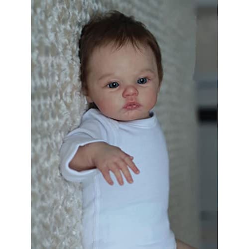 Tamaño: Aproximadamente 45 cm / 18 pulgadas de la cabeza a los pies. (Puede haber un pequeño error ya que se mide manualmente). Peso de la muñeca con ropa: aproximadamente 0,9 kg. Estructura: La cabeza y las extremidades están hechas de vinilo de silicona suave, el cuerpo de tela está relleno con algodón PP, muy suave y de tacto realista. Las extremidades de la muñeca son móviles. La muñeca puede sentarse, pero no puede pararse ni hablar. Aviso: La muñeca de cuerpo de tela no puede sumergirse en agua. Ojos: Ojos acrílicos de alta calidad de Taiwán, no parpadean. Cabello: cabello implantado. Incluye: muñeca terminada * 1, conjunto de ropa * 1, chupete magnético * 1, biberón * 1, certificado de nacimiento * 1. Aplicación: regalo de cumpleaños para niños, juguetes para niños, regalo navideño para tus bebés o tus seres queridos, y también para coleccionistas. Características: Para lograr un efecto más realista de la muñeca como un bebé real, se utilizan materiales de pintura avanzados importados en la fabricación, y el color de piel está pintado en 3D para hacer la muñeca más delicada, con piel jaspeada y venas visibles. Muñeca bebé reborn con piel pintada en 3D realista, cuerpo blando de tela, extremidades de vinilo de silicona. La muñeca puede sentarse y acostarse, pero no puede pararse ni hablar. Tamaño: aproximadamente 45 cm / 18 pulgadas. Peso de la muñeca con ropa: alrededor de 0,9 kg. Cabello: cabello implantado a mano. Ojos: ojos acrílicos de alta calidad de Taiwán que no parpadean. Incluye: muñeca terminada + conjunto de ropa + chupete magnético + biberón + certificado de nacimiento + caja de regalo de colores. Edad recomendada: 3+. Aplicación: regalo de cumpleaños para niños, juguetes para niños, regalo navideño para tus bebés o tus seres queridos, y también para coleccionistas.