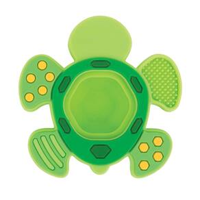 Muñeco mordedor Tortuga de Nuby Teethe N' Pop para bebés de más de 3 meses. Este juguete lúdico alivia las molestias del bebé durante la dentición y ayuda en la salida de los primeros dientes. Hecho 100% de silicona suave, ideal para bocas sensibles y delicadas, proporcionando alivio sin irritar las encías. Su forma divertida de tortuga y múltiples texturas capturan la atención del bebé, estimulando el desarrollo sensorial; el centro Pop divertido ayuda a mejorar las habilidades motoras finas. Diseñado para fomentar el juego sensorial, es un esencial para los bebés. Nuby ofrece mordedores y otros productos para alimentación, destete dirigido por el bebé, calma, tiempo de juego, baño, habitación del bebé y regalos, con innovación patentada en todas sus categorías. Seguridad garantizada: desarrollado y fabricado para superar todas las normas y regulaciones gubernamentales de seguridad.