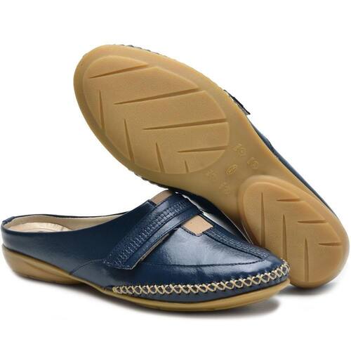 Mule Feminino Ortopédico Couro Confort Sapato sem Salto - 40 - Azul Marinho