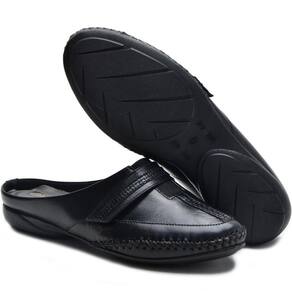 Mule Feminino Ortopédico Couro Confort Sapato sem Salto - 35 - Preto