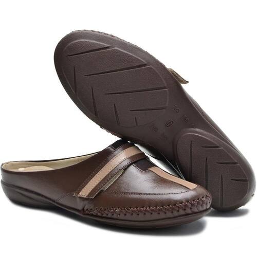 Mule Feminino Ortopédico Couro Confort Sapato sem Salto - 35 - Marrom